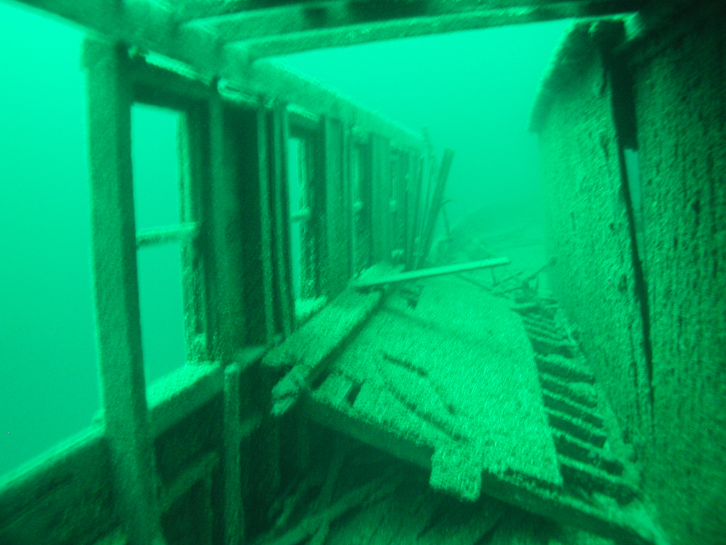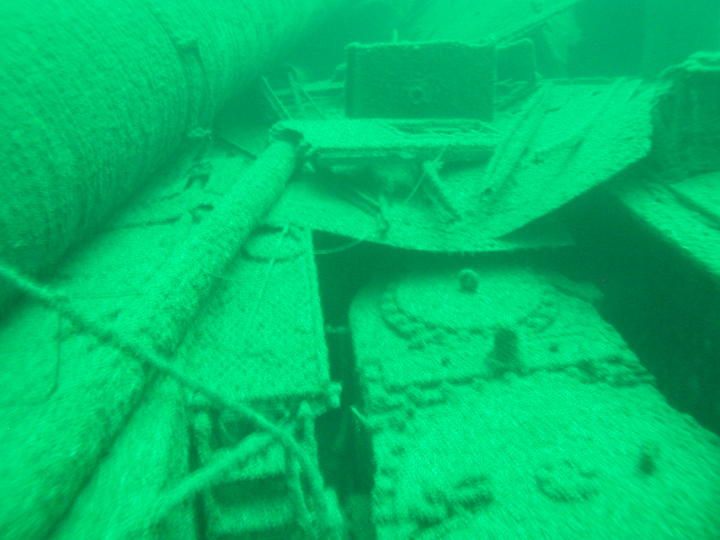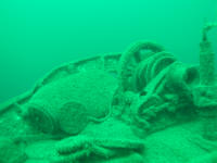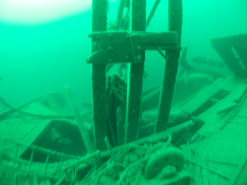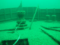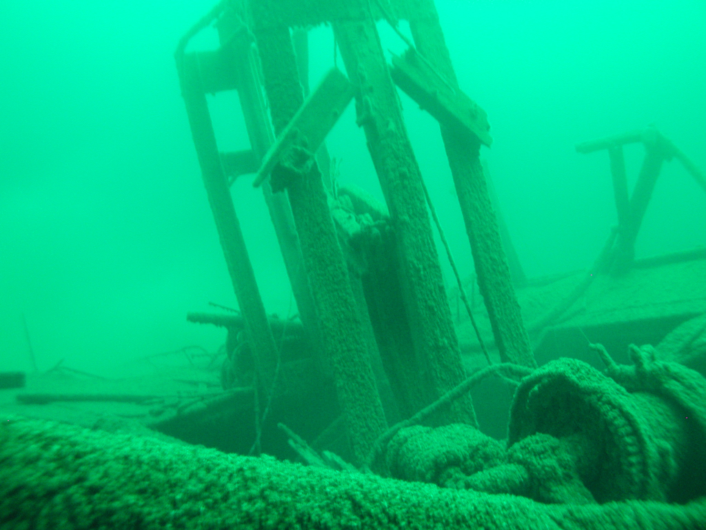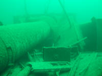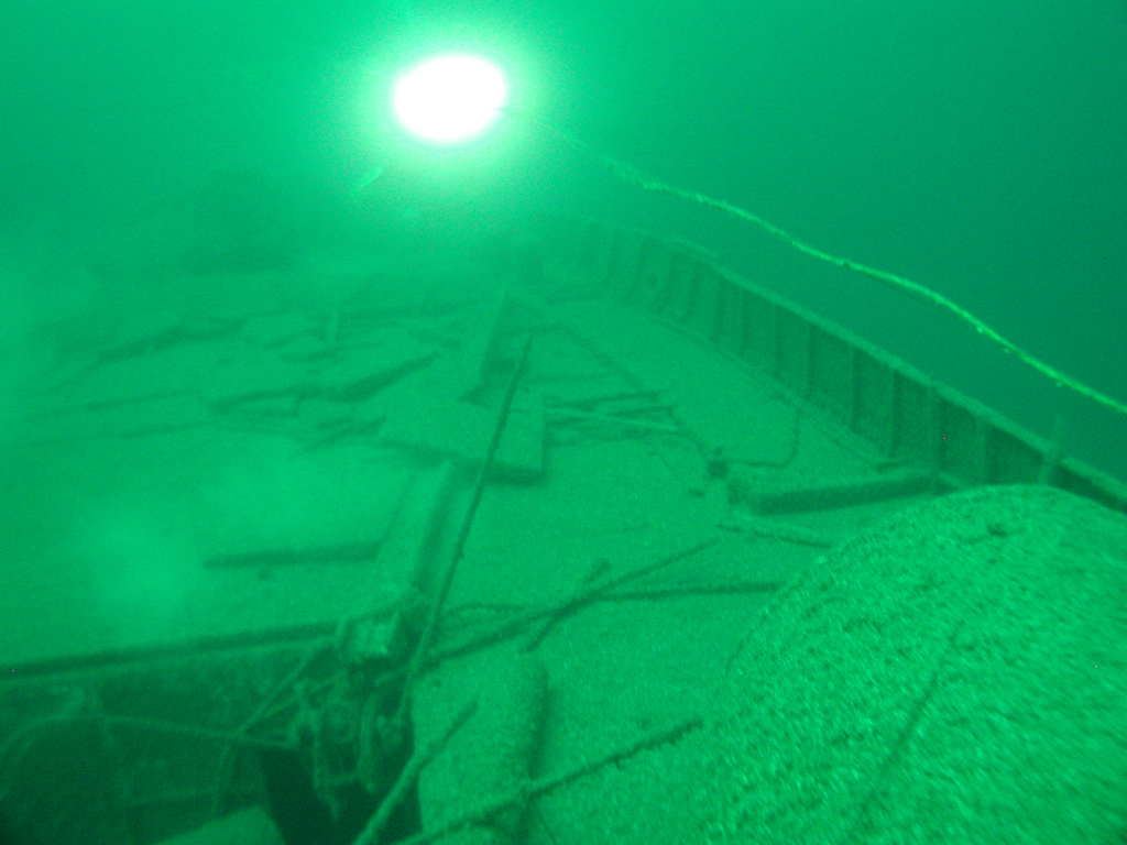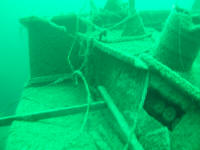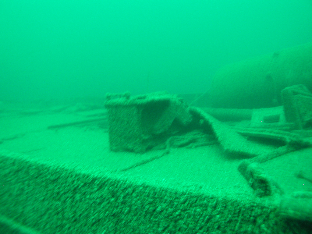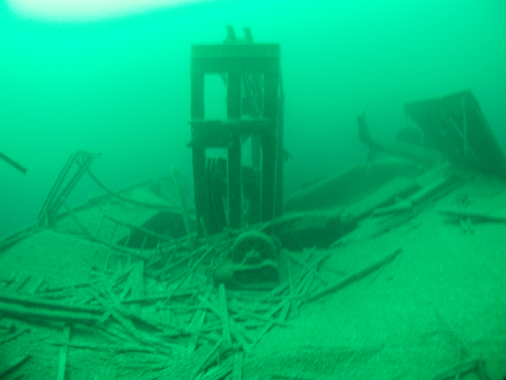 She rests at the southern most tip of Door County. The Lakeland is a 280 foot freight and passenger steamer built in 1887. On December 3, 1924, she was down bound for Chicago when she took on water and foundered in heavy seas and sank. She lies in 220 feet of water upright and very intact. The Lakeland carried a cargo of cars and packaged goods including Canadian whiskey.