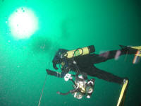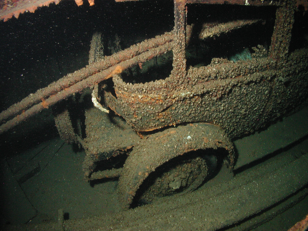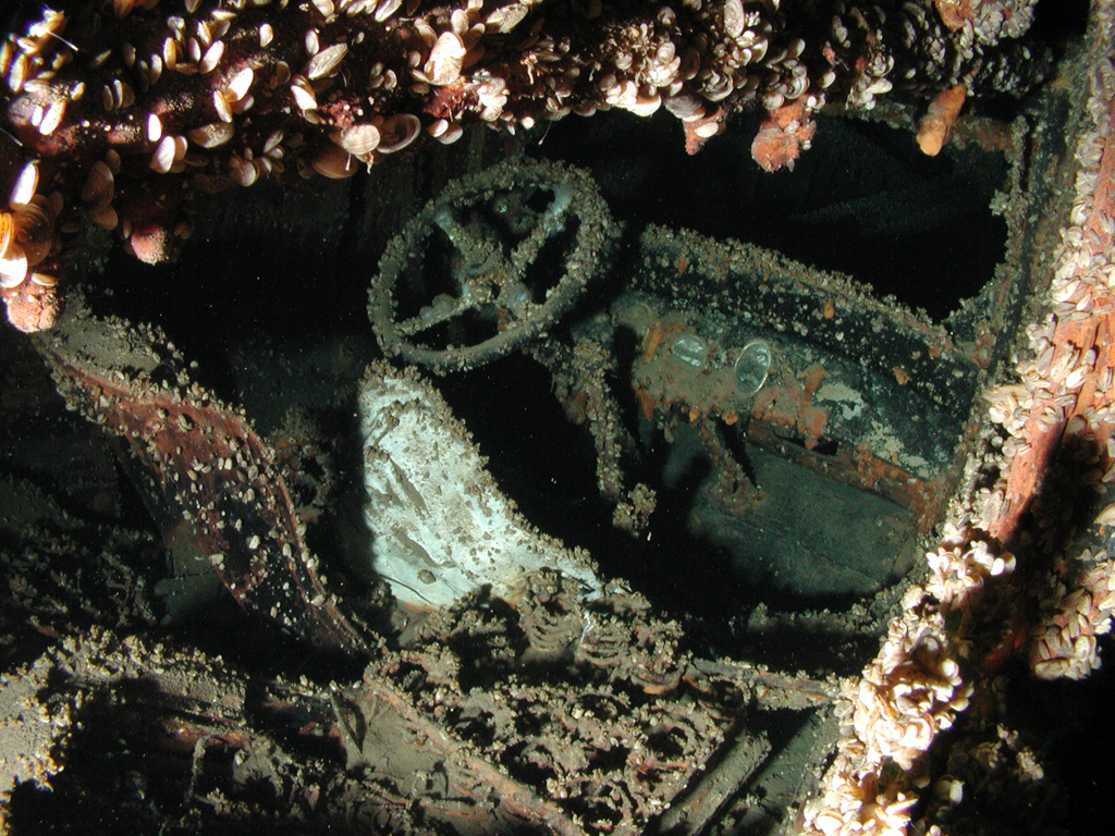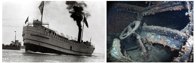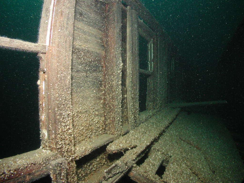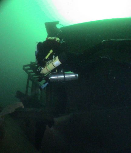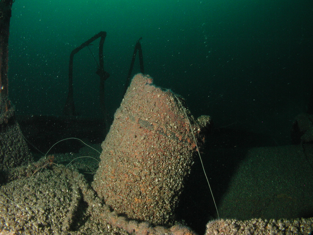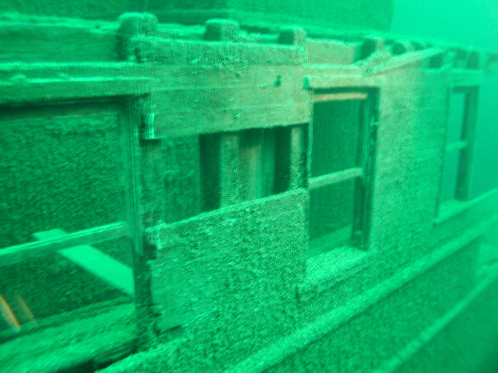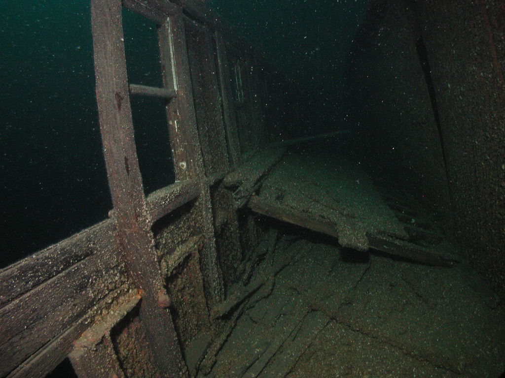 She rests at the southern most tip of Door County. The Lakeland is a 280 foot freight and passenger steamer built in 1887. On December 3, 1924, she was down bound for Chicago when she took on water and foundered in heavy seas and sank. She lies in 220 feet of water upright and very intact. The Lakeland carried a cargo of cars and packaged goods including Canadian whiskey.