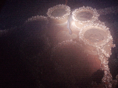 Found by John Steele May 1986. The steel steamer (296'x40'x24') sank in the thick fog after a collision with the Canadian steamer Jack on May 30th 1895. She sits intact on a 45 degree list too port in 210 feet of water.
